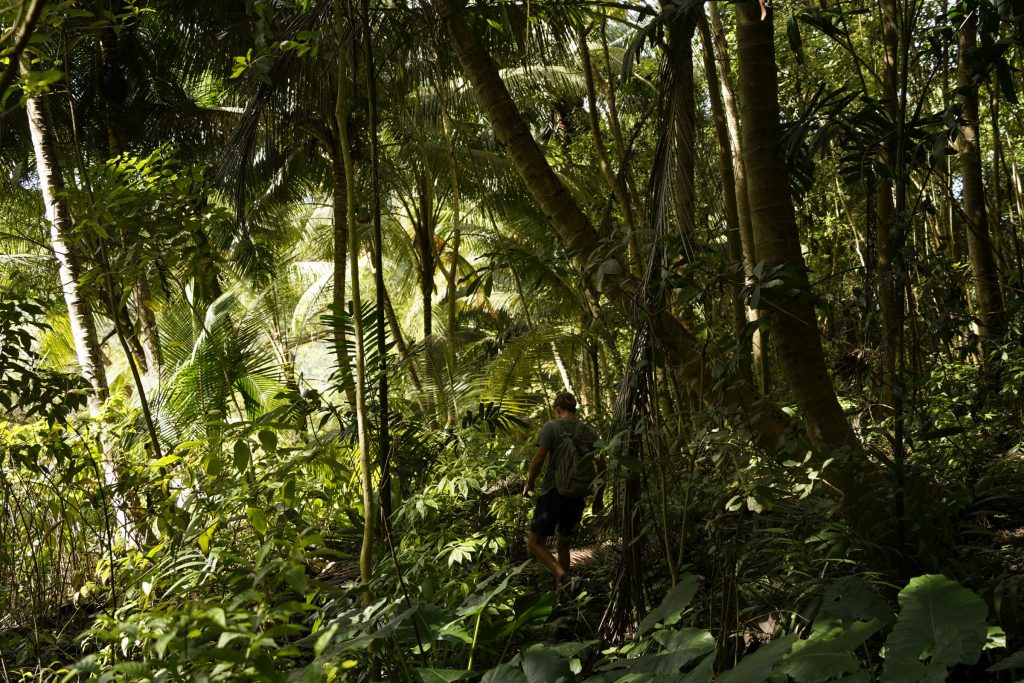 The forests were a different story altogether, dark and dense and full of creepers and vines and palms and huge snails. Somehow of all of the island’s, it was the least accessible, and we walked along the road for a long time looking for a path or track to take us into its heart which never came. Locals leaning on garden fences and calling out to friends through car windows were interested and helpful but quite fearful for two young tourists looking for forest, giving warnings of gun crime in the area.