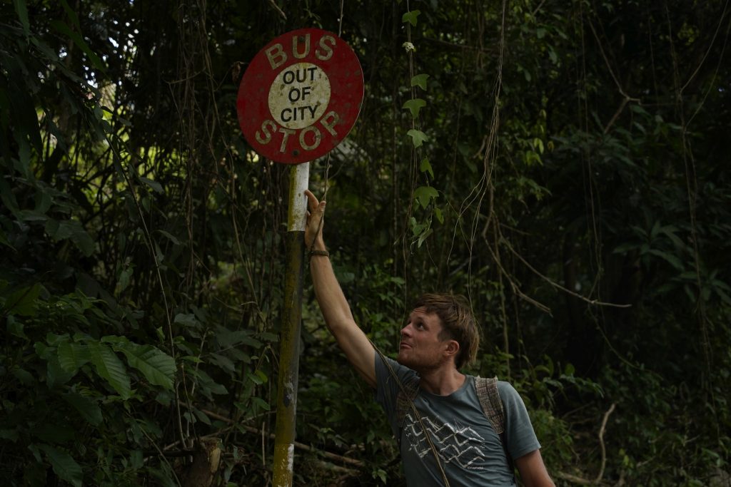 The climate was pretty fantastic, a golden syrup stream of sunlight could be clouded over by a downpour of fast fine rain, hungrily drunken in by the vast green expanse, and as fast as we were wet, we were dry. Following the road was enough of an adventure with tall palms that made you dizzy looking up. A dark blue hummingbird danced off the leaves and flowers and fast as a breath was gone. A river would appear down steep drops to the side and overgrown bus stops on unsuspecting bends in the road. They were symbolic really as the bus was not concerned by timetables and when and if it came, would stop anywhere for you which reminded us lovingly of Senegal.